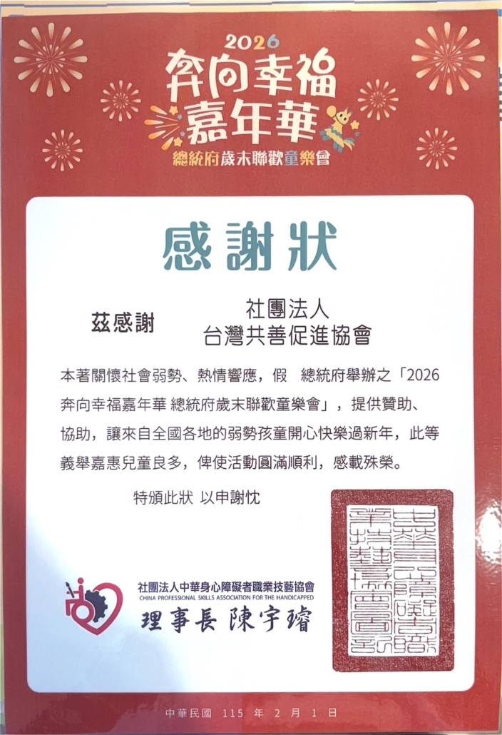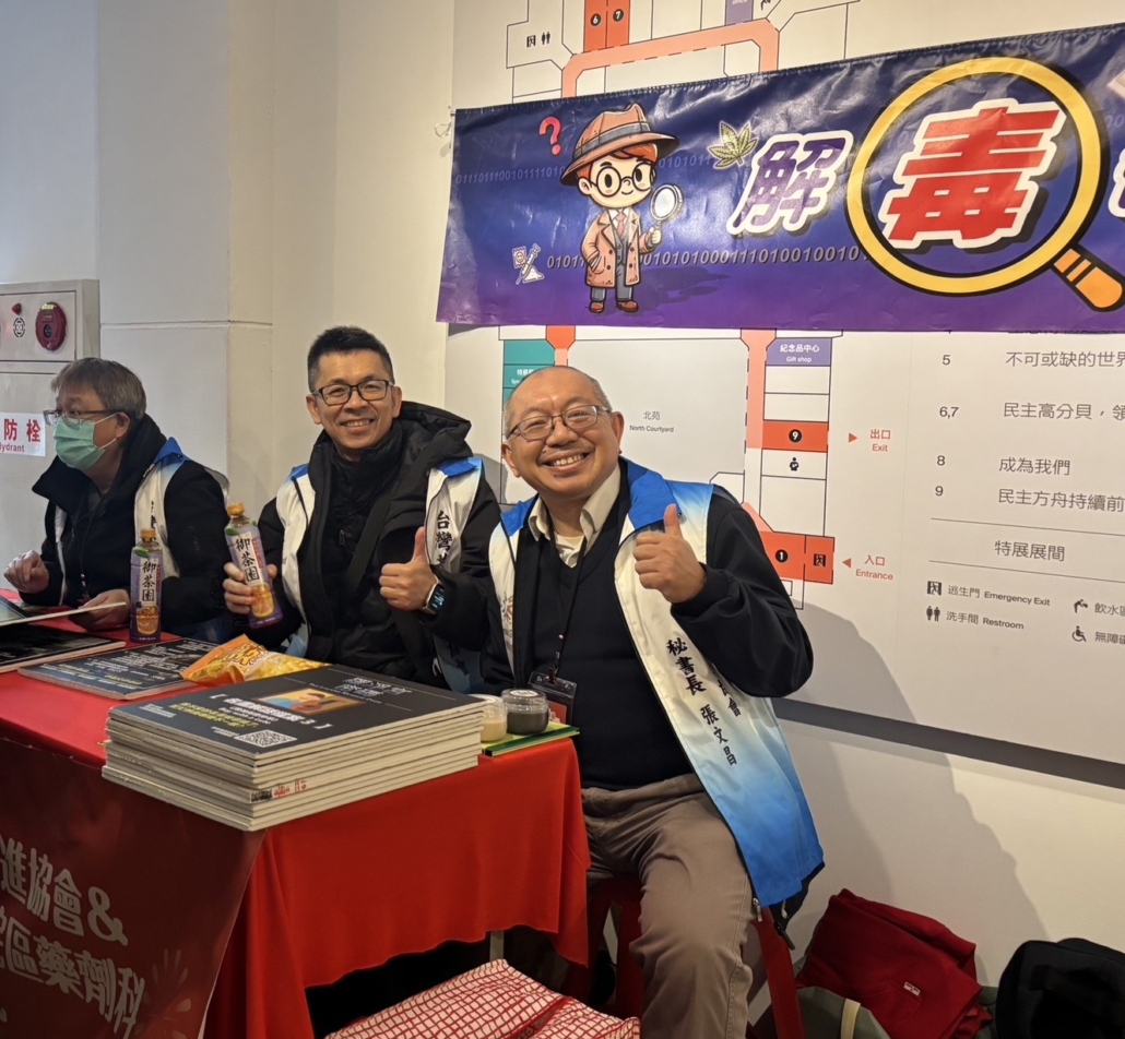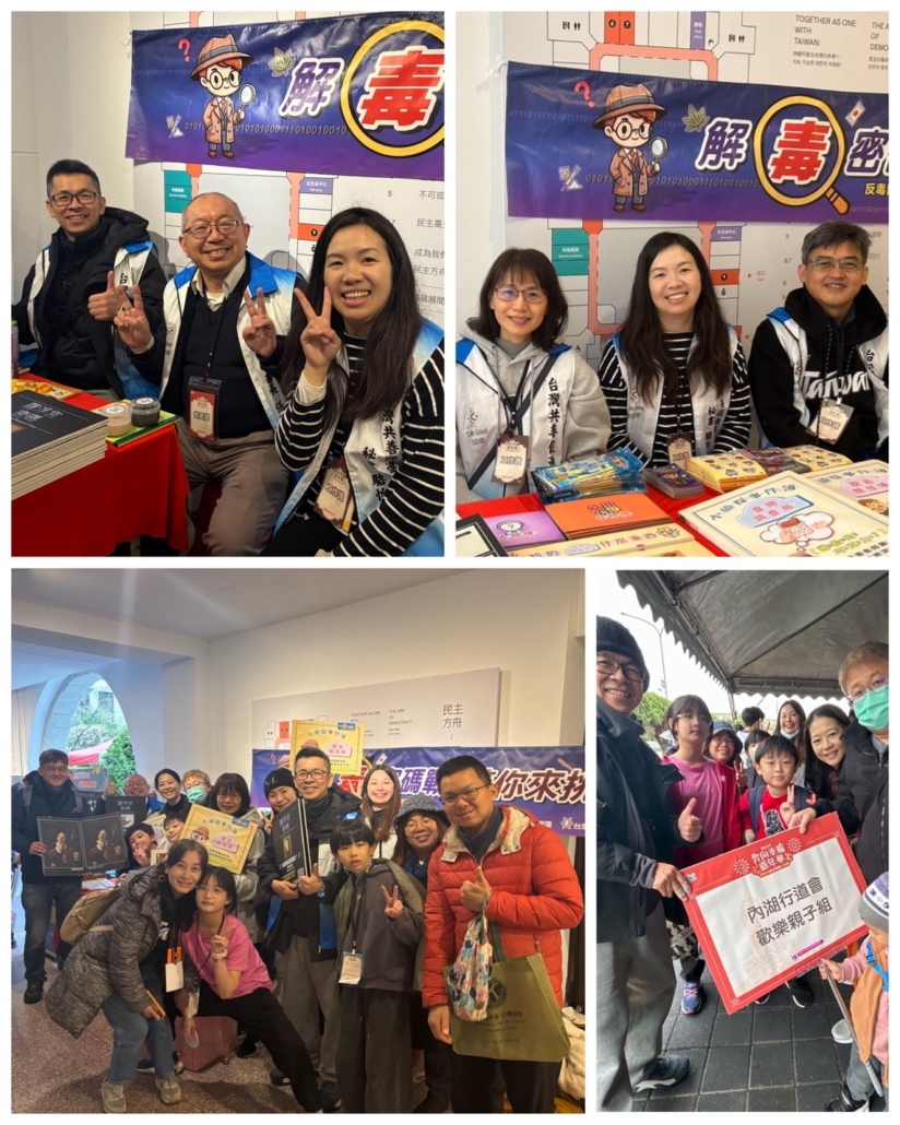 2026年2月1日,共善協會申請參加了總統府廣場舉辦的【奔向幸福嘉年華:歲末聯歡童樂會】反毒教育攤位。當天台北下著雨,天氣濕冷,場地有些泥濘,感謝「臺北市聯合醫院松德院區藥劑科」不僅支持了本次活動的物資,也派出專業藥師協助向孩子、老師及家長們提供實用的衛教資訊。